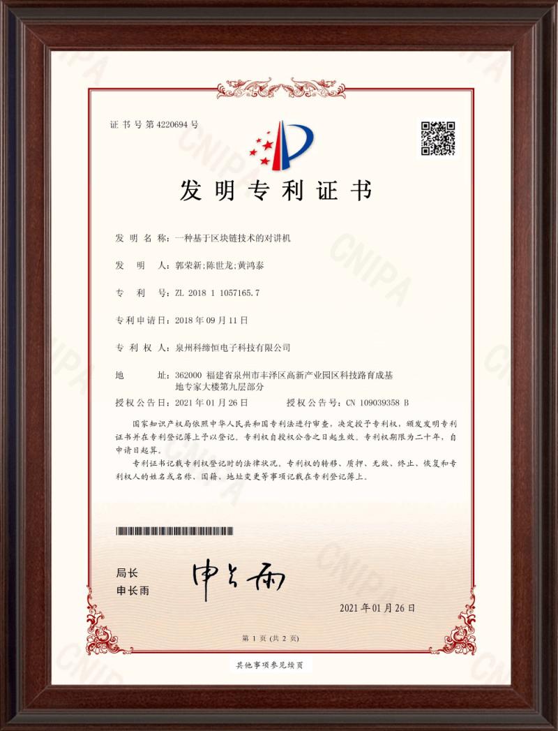 發(fā)明專(zhuān)利(一種基于區(qū)塊鏈技術(shù)的對(duì)講機(jī))
